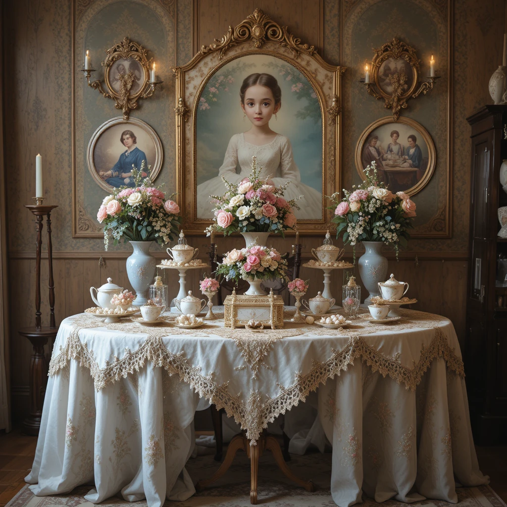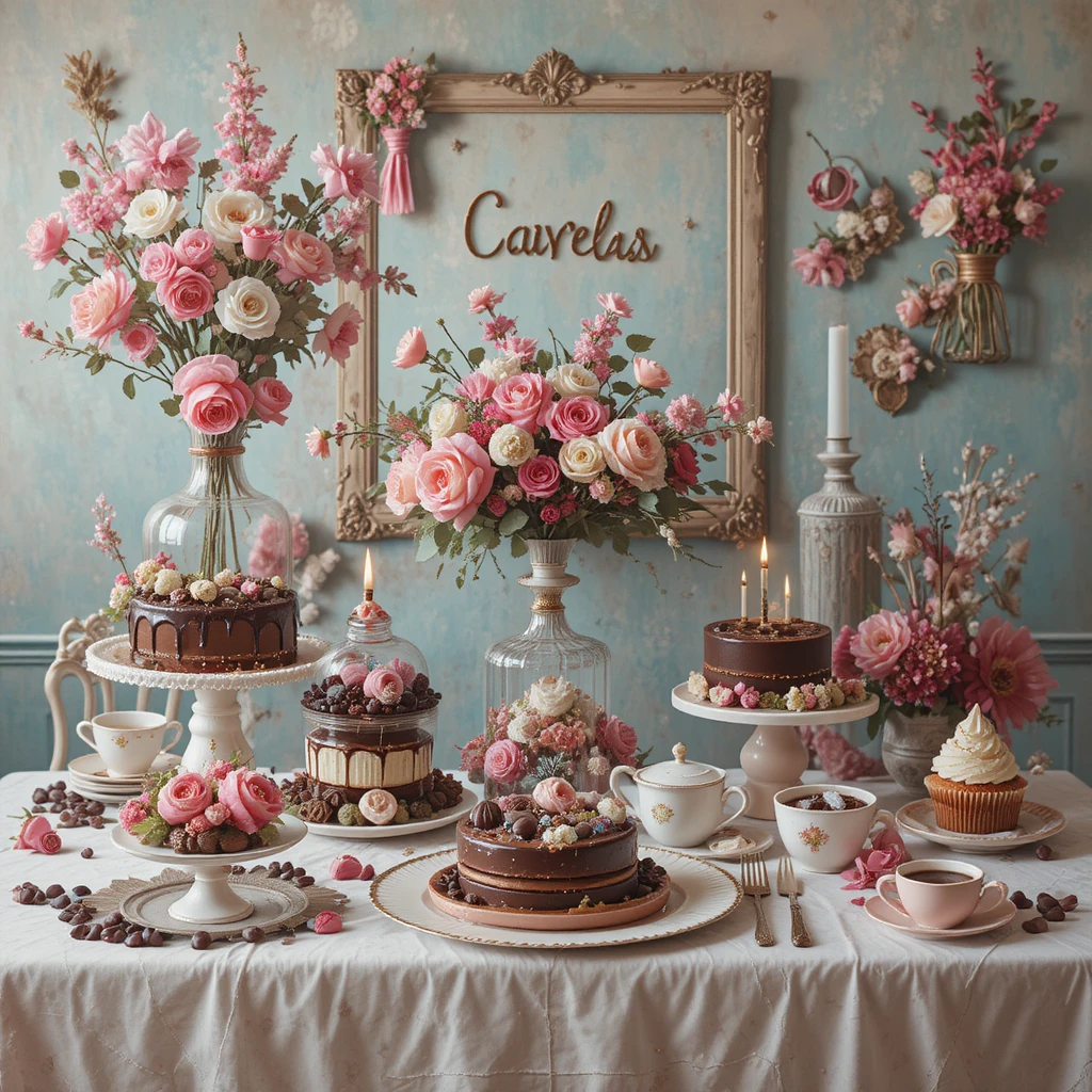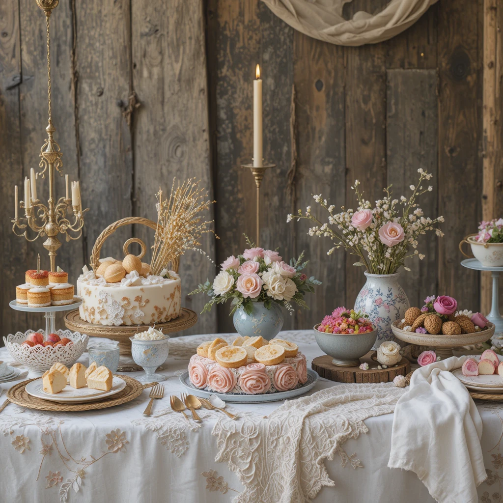 Channel old-world charm with a vintage tea party sweet table. Use mismatched vintage china, lace tablecloths, doilies, and antique silverware. Add roses, pearls, and delicate glassware for that classic feel.