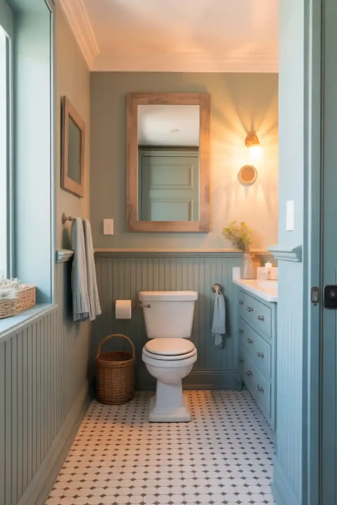 If you want to bring cozy cottage vibes into your bathroom, beadboard wainscoting is a perfect choice. Its narrow vertical grooves add subtle texture that feels warm and inviting.