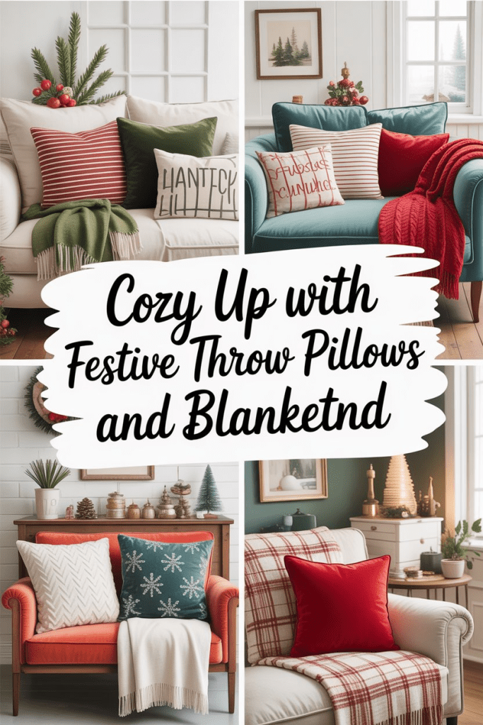 2. Cozy Up with Festive Throw Pillows and Blankets