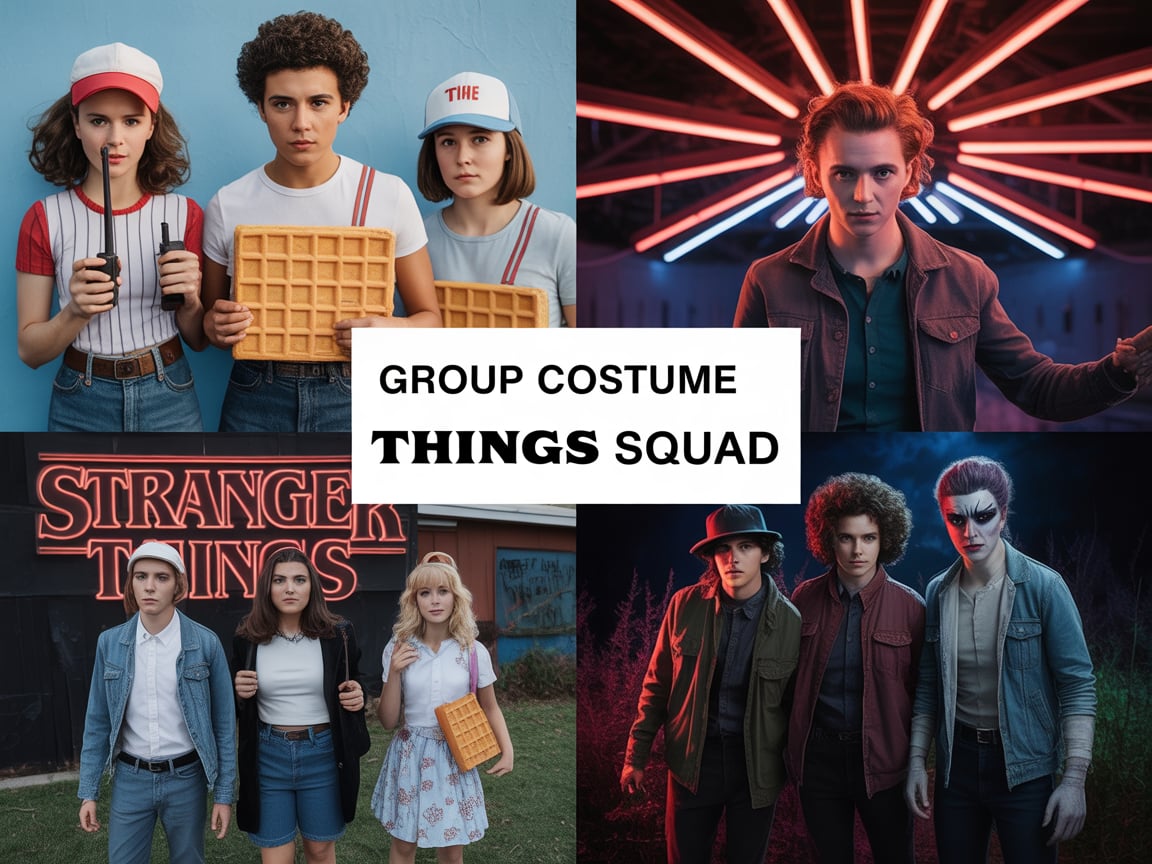 Gather your friends for an epic Stranger Things-inspired group costume. Options abound: dress as Eleven with a waffle prop, Dustin with a baseball cap and walkie-talkie, or Vecna for a creepy villain vibe. This Halloween costume idea is perfect for groups who want to recreate the nostalgic 80s vibe of Hawkins, Indiana. Mix and match characters for a fun, cohesive look that’ll have everyone reminiscing about the Upside Down.