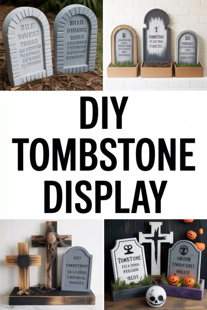 Bring the graveyard indoors or set it up in your yard with a DIY tombstone display. Use foam boards or cardboard to create tombstones, painting them gray and adding funny or eerie epitaphs like “Here Lies My Wi-Fi” or “R.I.P. Party Pooper.” Scatter fake moss, leaves, or plastic bones around the base for authenticity.