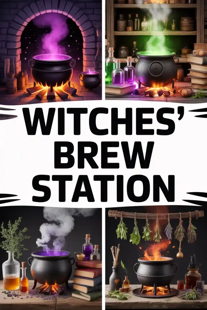 Create a themed drink station to serve “witches’ brew” or spooky cocktails. Decorate the table with a black tablecloth, plastic cauldrons, and potion bottles filled with colored liquids (use food coloring in water for a safe, budget-friendly effect). Add dry ice for a smoky, mystical vibe, but ensure proper handling to avoid burns.