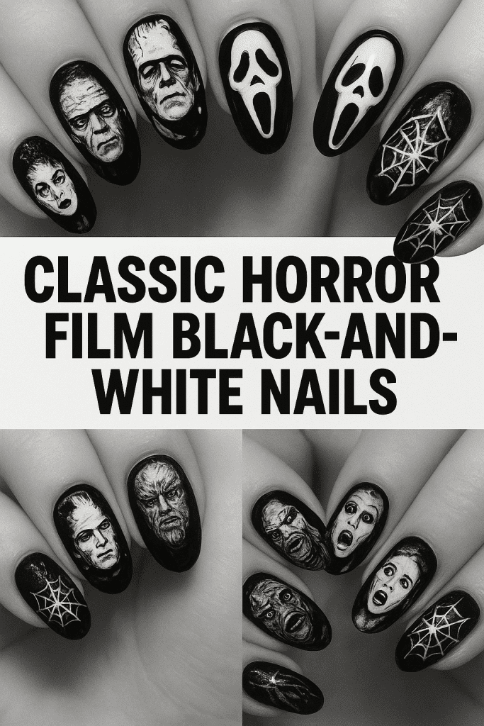 1. Classic Horror Film Black-and-White Nails