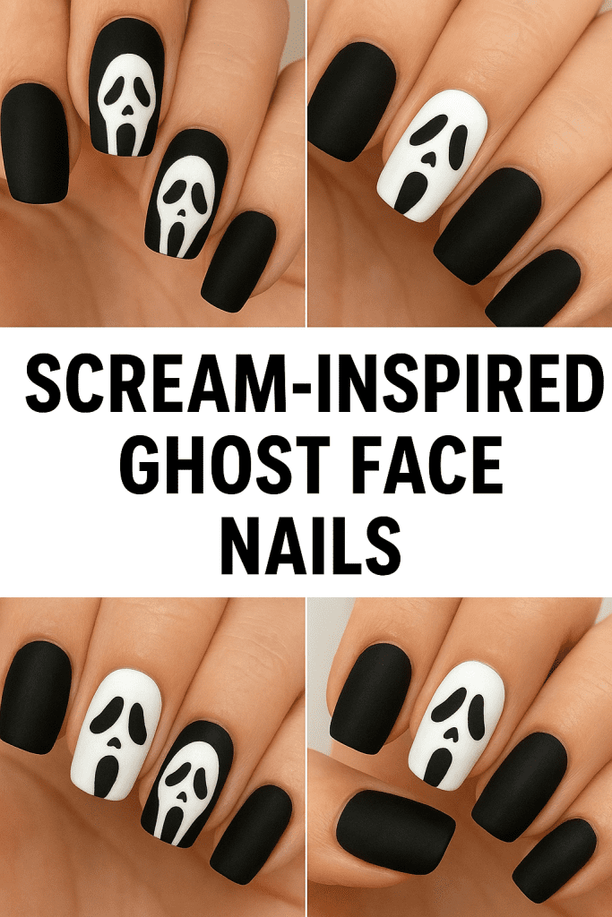 4. Scream-Inspired Ghost Face Nails