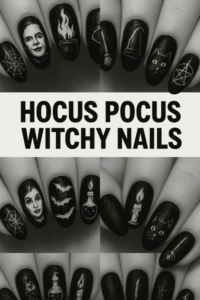 On short nails, you don’t need detailed portraits—just a mix of bold colors and mystical accents to capture the film’s charm. Pairing this with witch-inspired Halloween décor creates the perfect nostalgic setup for your movie night.