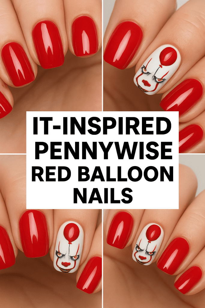 6. IT-Inspired Pennywise Red Balloon Nails