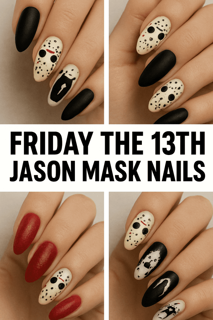 7. Friday the 13th Jason Mask Nails