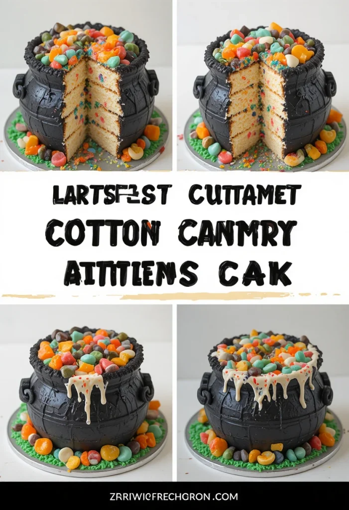 Evoke carnival nightmares with this gravity-defying creation. Bake a deep chocolate cake in a heatproof bowl to form a cauldron shape. Once cooled, hollow the center slightly and fill with pink cotton candy that “boils” over the edges. Rim the top with black sanding sugar to mimic cast iron. Insert striped paper straw “stirrers” topped with gummy eyeballs. The cotton candy melts into a sticky pink potion when sliced—interactive dessert at its finest.