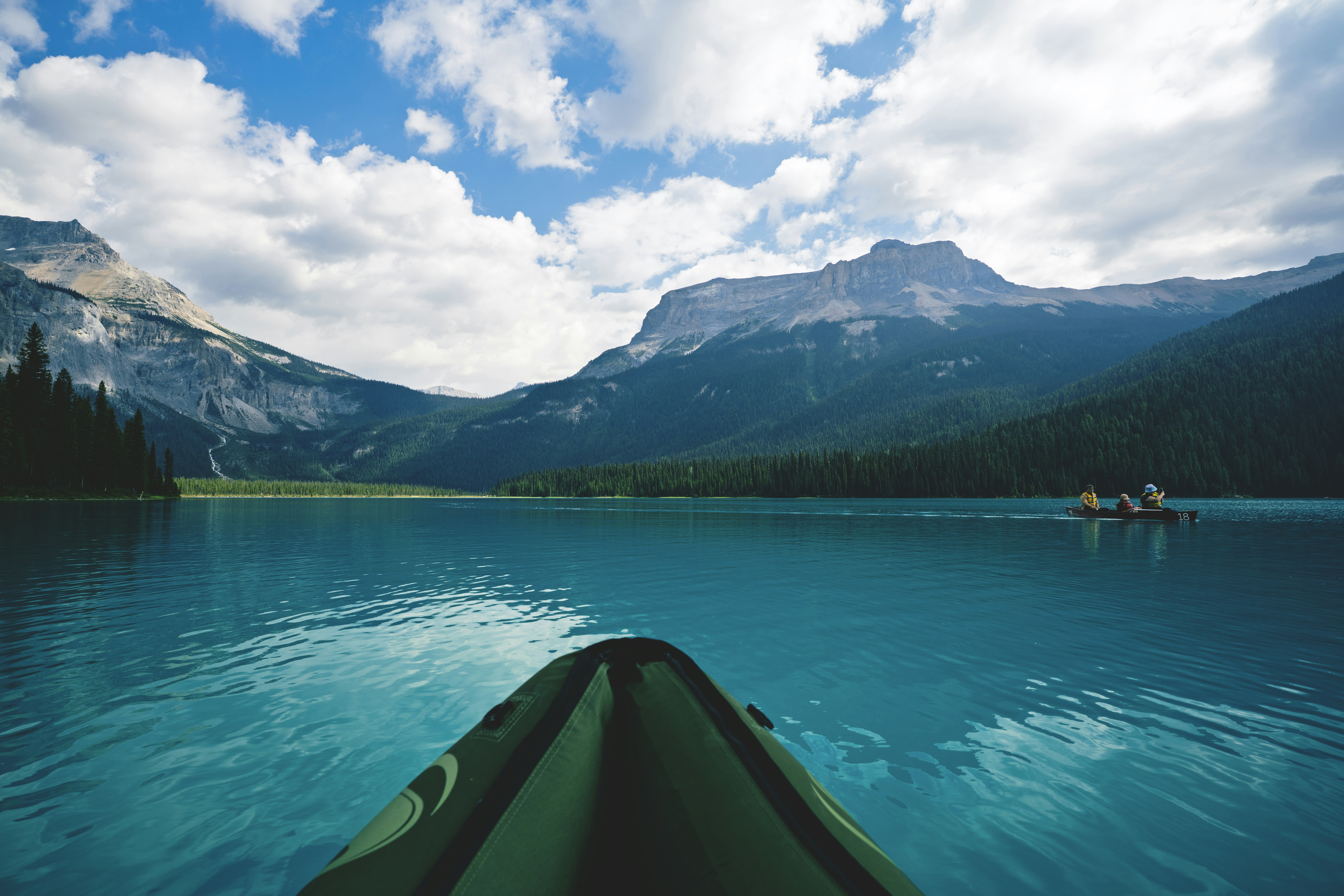 Kayaking on a serene lake surrounded by mountains (Source: Unsplash)