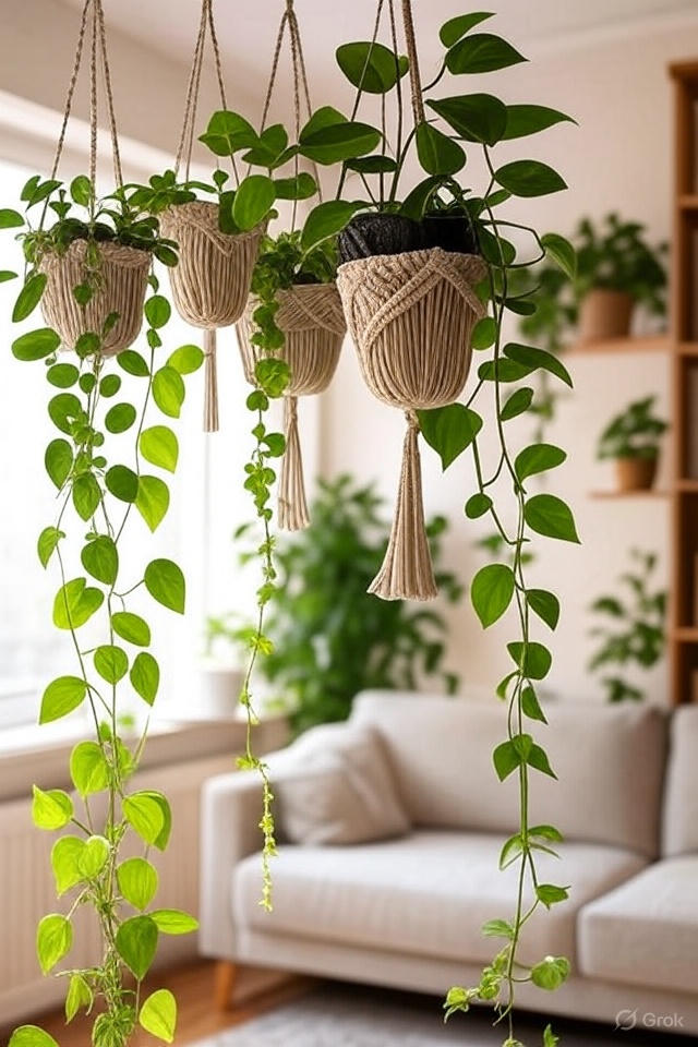 Not every room has floor space to spare—that’s where hanging planters come in. Macramé hangers, wall-mounted pots, and ceiling hooks let you suspend plants, freeing up floor space while creating visual interest.