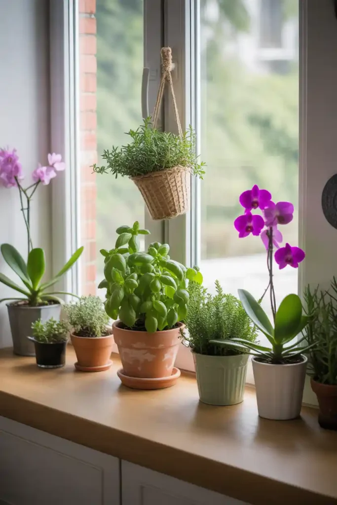 Kitchen windows look especially inviting with potted basil, rosemary, or mint—plus, they’re practical for cooking. In living rooms, consider orchids or African violets for pops of color.