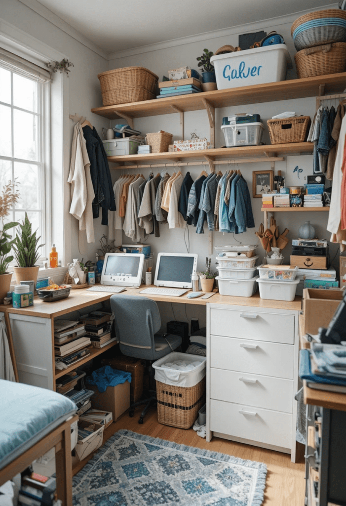 Too many items make a small room look messy and uncomfortable. Keeping only useful things helps create more space. Extra or unused items should be removed or stored properly. Storage boxes, shelves, and baskets can be used to organize things. A clean and clutter-free space always looks bigger and more attractive.