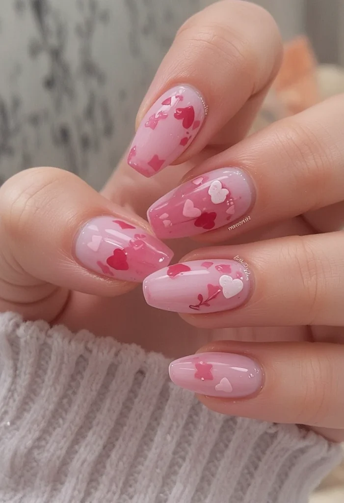 Heart nails are a timeless staple because they are incredibly versatile. You can go for the “classic red” look, or you can pivot toward a pink aesthetic that feels modern and chic. Much like how people look for Halloween pink nails ideas in October to soften the spooky season, Valentine’s Day allows for a play on textures, colors, and placements.