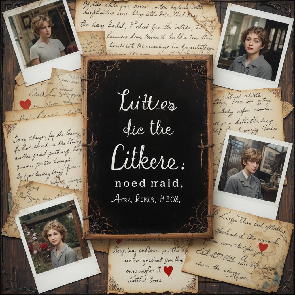 Channel old-school romance with sepia tones, aged paper textures, and vintage elements. Include retro postcards, wax-sealed envelopes, dried flowers pressed between pages, black-and-white couple photos, fountain pens, and handwritten “I love you” notes.